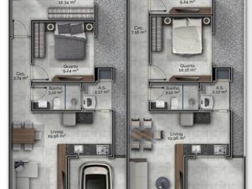 Área Construída: 76m²Terreno Área Total: 180m²