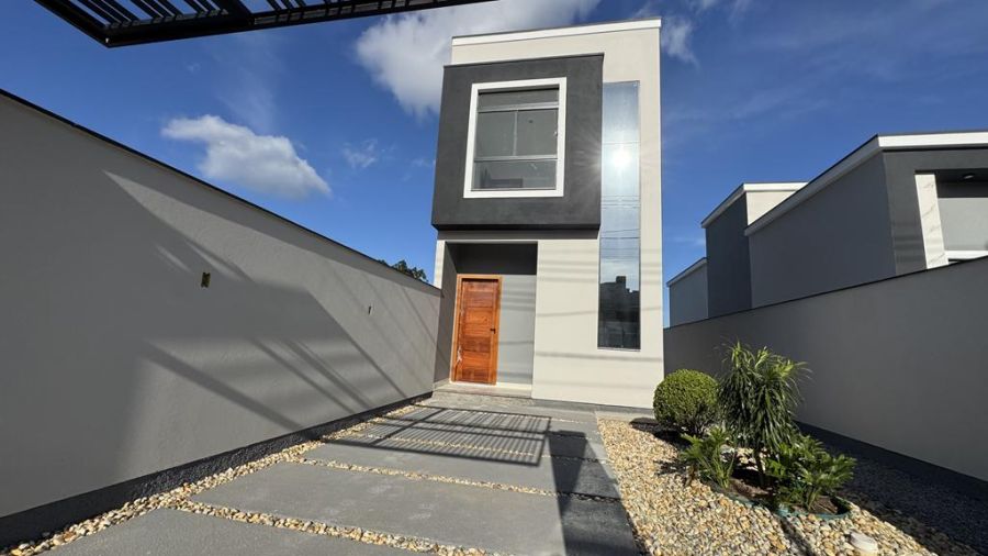 O Sobrado possui: Sala e Cozinha integrada Lavabo na parte de baixo 2 Quartos Banheiro Social Lavanderia Garagem Descoberta Passagem Lateral E um enorme terreno de fundos com mais de 80m² livre