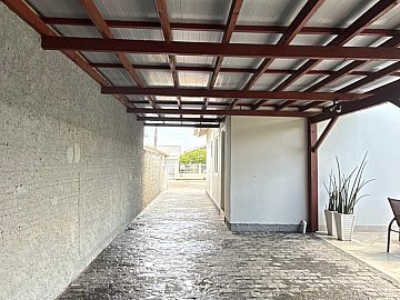 Garagem coberta para até 3 veículos.