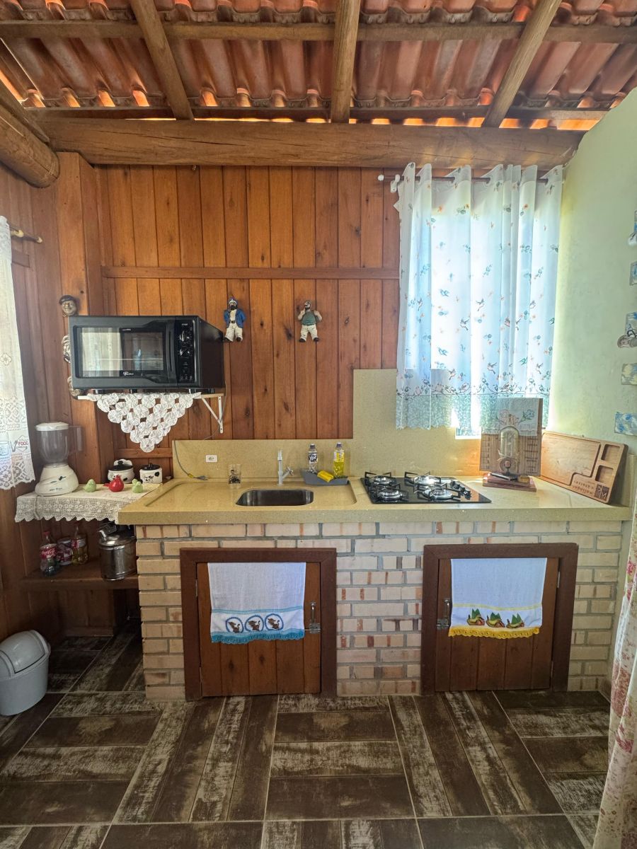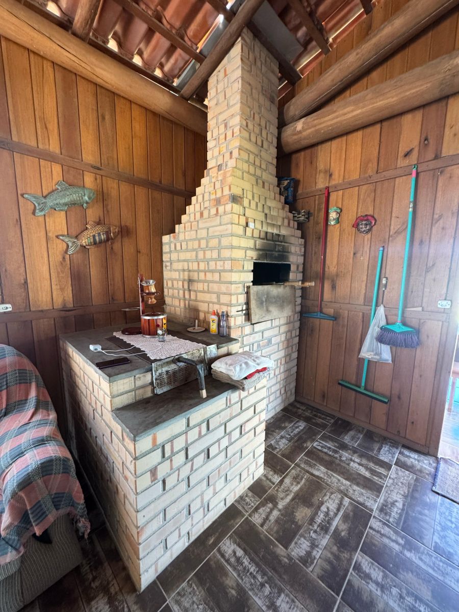 Espaço com fogão a lenha - ideal para momentos de lazer.