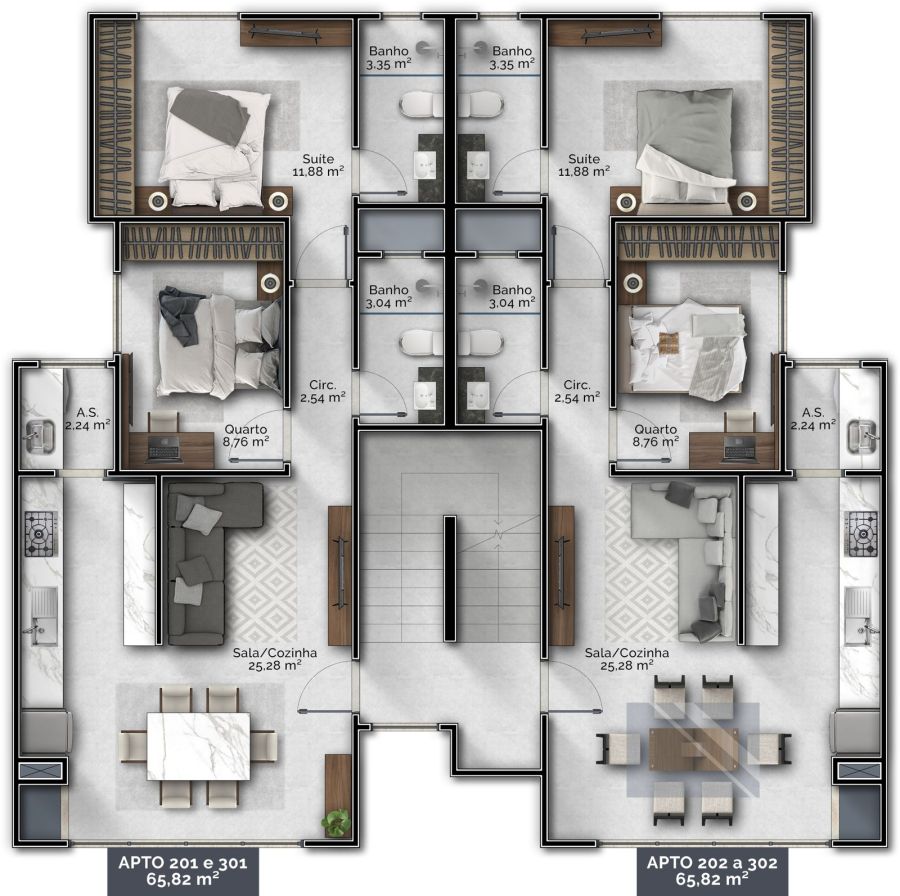 3º Andar (301 e 302) - R$ 405.000,00 cada.