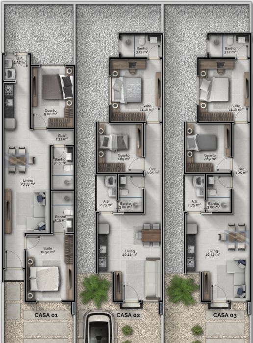 62m² casa 02 e 03.
