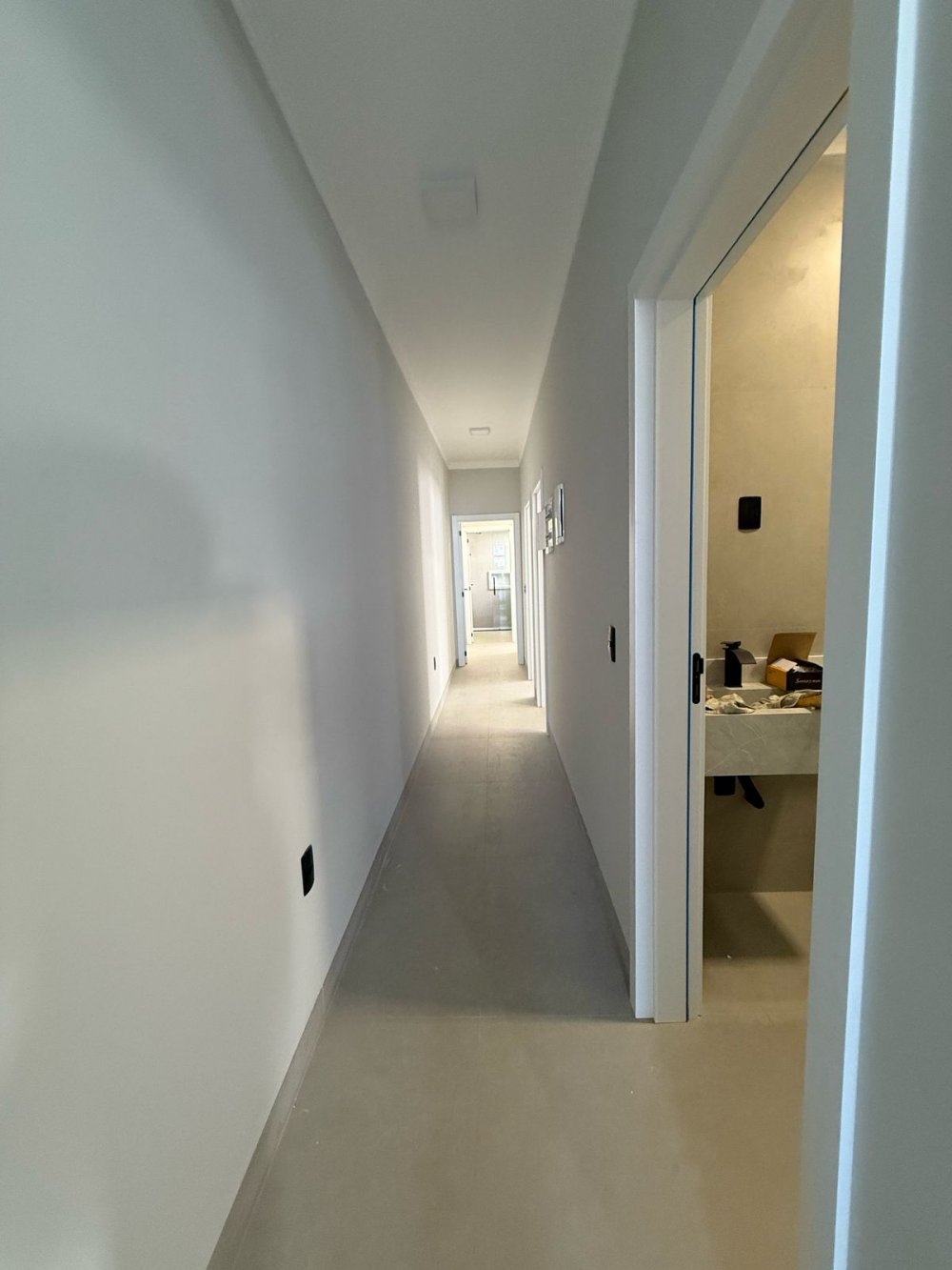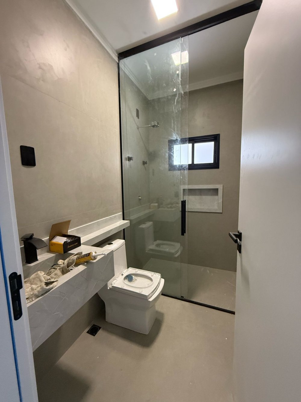 Nicho em porcelanato na mesma cor da cuba